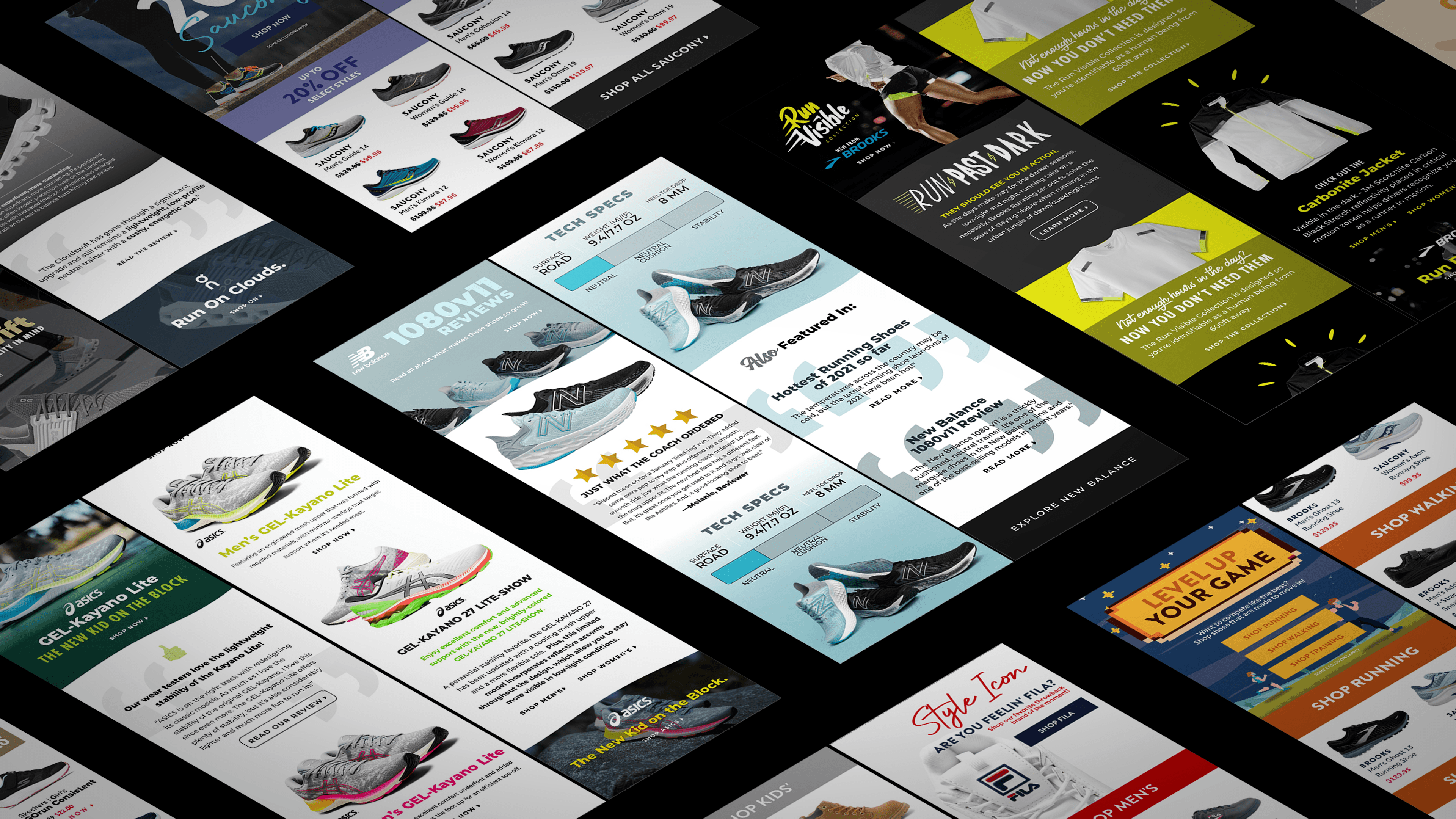 As the Creative Lead for Running Specialty Group, I was responsible for designing and executing digital marketing campaigns across multiple banners including JackRabbit, Olympia Sports, and Shoes.com. I created everything from email graphics to homepage visuals and social media content, ensuring each brand maintained a consistent look while meeting its unique voice and audience. Whether launching seasonal sales or highlighting new product drops, I owned the visual storytelling from concept to execution.